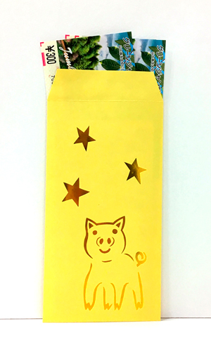 5月の個展の際に、ギャラリーで切り絵のワークショップを開くことになりました。気軽にご参加いただける、1時間程度のワークショップです。図案は、ワークショップ用に制作したオリジナル。グリーティングカード3種類と好評の宝くじ保存袋(今回は子ブタの図柄)4点の図柄と用紙をお渡ししますので、その中から1、2点作っていただきます。(残りは、お持ち帰りいただけます。)